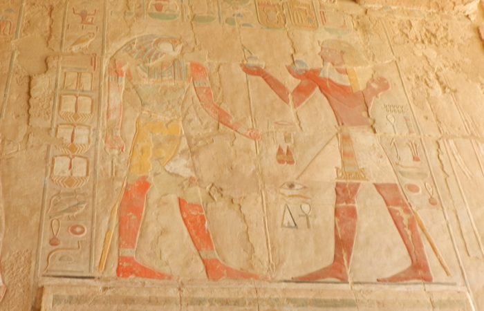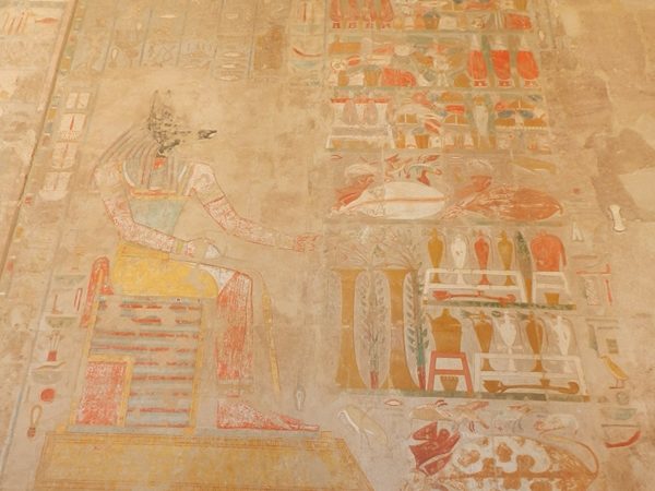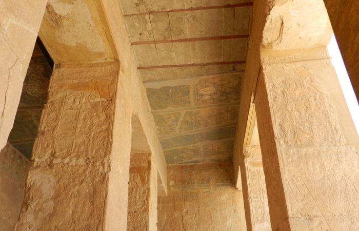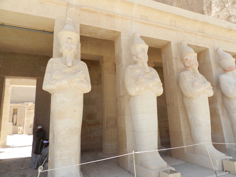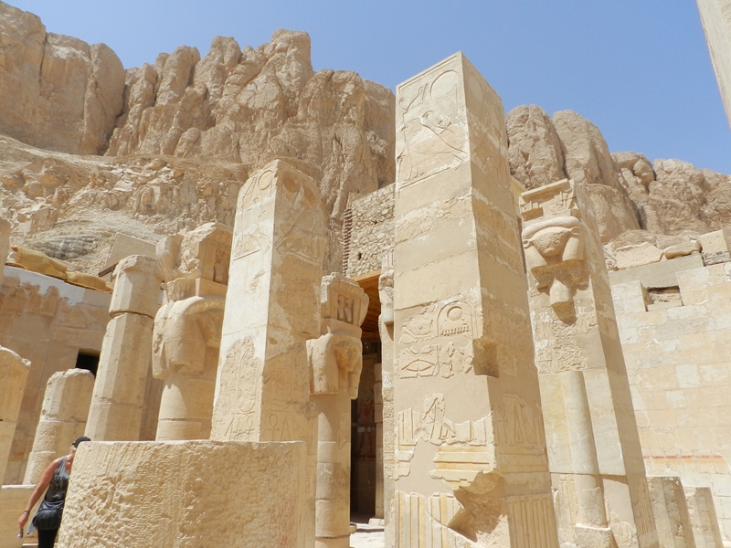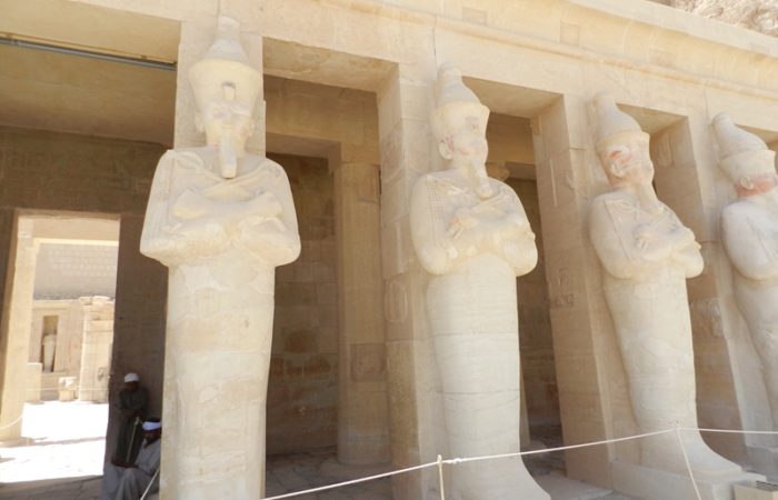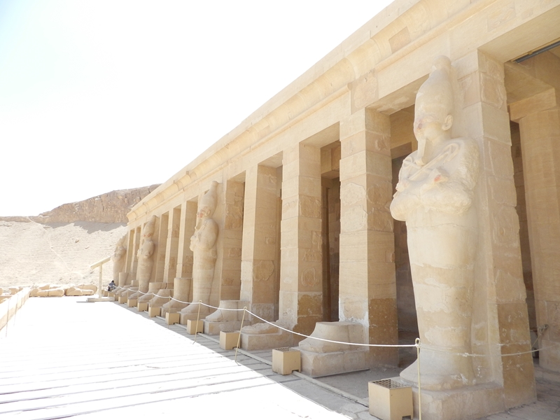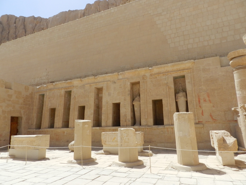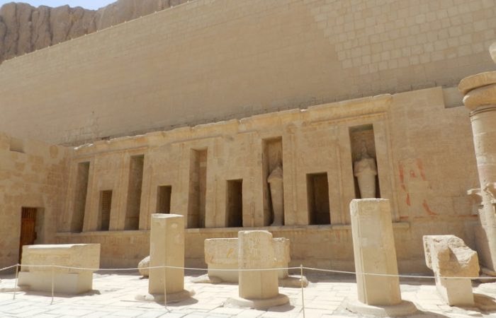 Der Totentempel der Hatschepsut stammt aus der 18. Dynastie und ist der am besten erhaltene Tempel in Deir el-Bahari am Westufer des Nil in Theben. Auffällig ist seine eigenwillige Architektur.[1] Die Pylone sind durch offene Pfeilerhallen am Anfang je einer Terrasse ersetzt. Der gesamte Tempel ist aus Kalkstein errichtet.